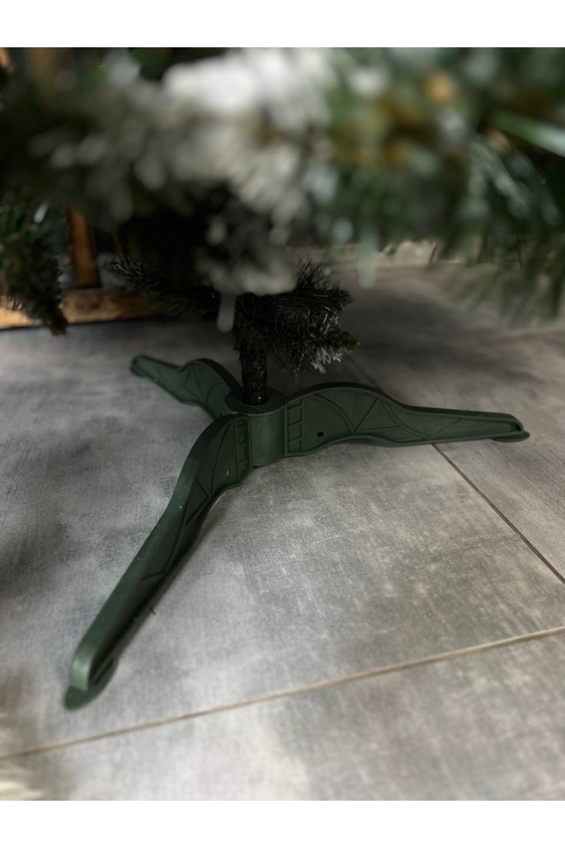 Количество веток, ярусов и диаметр основания зависят от высоты изделия, обеспечивая идеальную форму и устойчивость. Конструкция состоит из нескольких частей, что делает сборку лёгкой и удобной. Ель установлена на прочную пластиковую подставку.