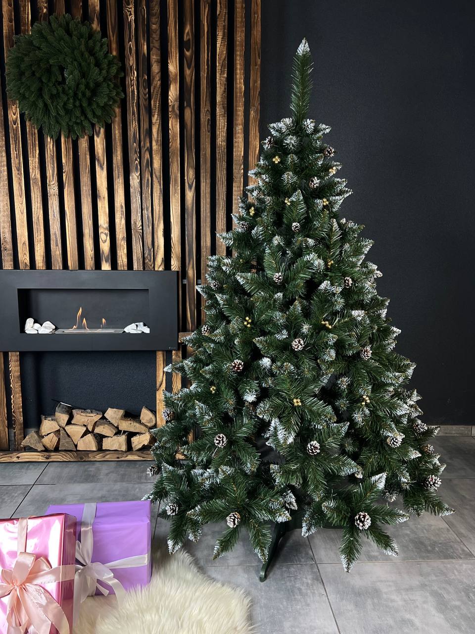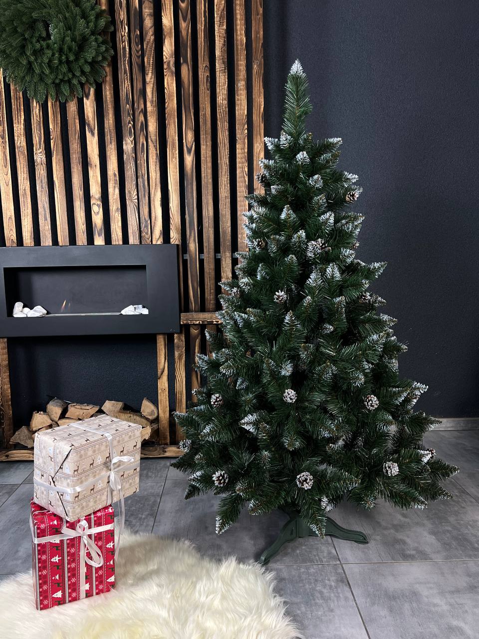 Новорічна ялинка ПВХ Засніжена з шишками 150см