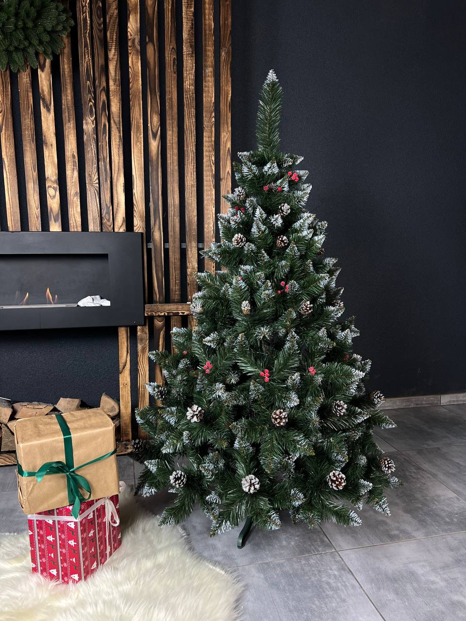 Новорічна ялинка ПВХ з шишками та калиною 1,8 м