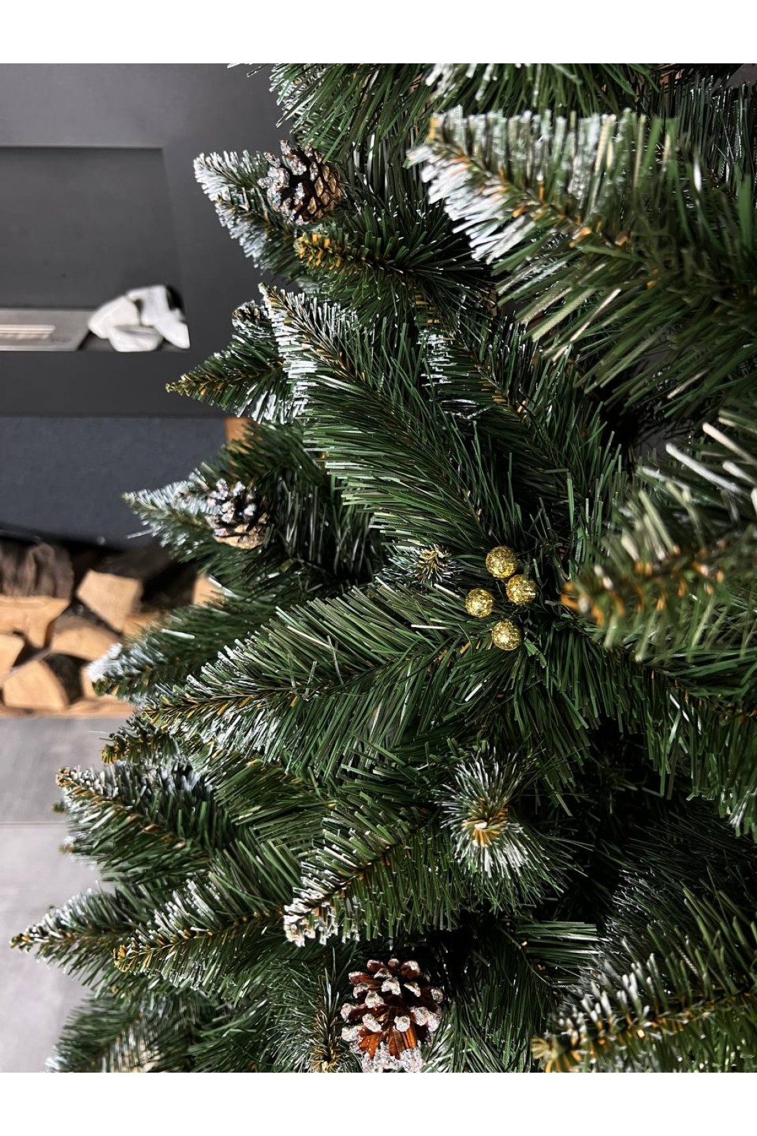 Новорічна ялинка ПВХ з шишками та золотом 2,0 м — це стильна, ошатна та безпечна прикраса для вашого дому чи офісу. Виготовлена з високоякісного ПВХ-матеріалу, який не горить, гіпоалергенний і безпечний для дітей та домашніх тварин.