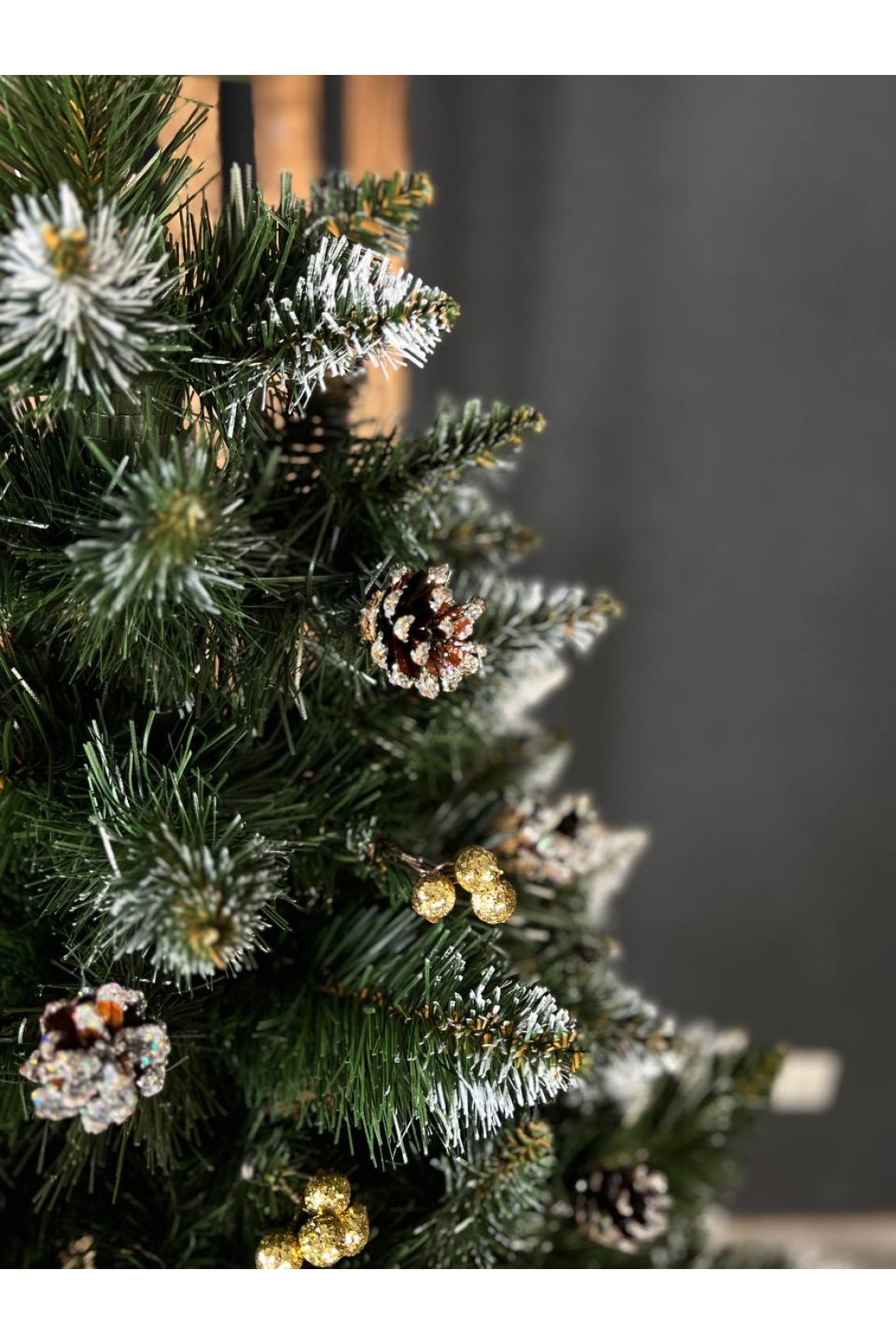 Густі, м’які гілочки ялинки прикрашені натуральними шишками та червоними ягідками калини, що надають деревцю святкового вигляду й відтворюють атмосферу справжньої зимової природи.